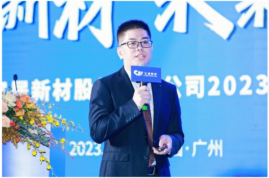 以硬核產品為基礎,演繹標桿性產品升級,展現毫不遜色的產品實力。銷售部經理湯志恒現場揭開2023三威新材四大系列新品體系的神秘面貌。