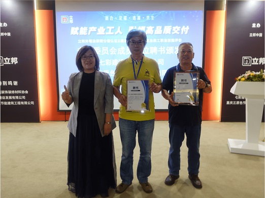 在啟動儀式上,立邦為七彩建設發(fā)展有限公司、三原色節(jié)能建筑工程有限公司頒發(fā)聘書,邀請兩家公司成為專家委員會成員單位,攜手推動產(chǎn)業(yè)工人培養(yǎng)的快速發(fā)展,培育高素質(zhì)、高技能的新型涂裝產(chǎn)業(yè)工人,引領高品質(zhì)交付,助力行業(yè)高質(zhì)量發(fā)展。