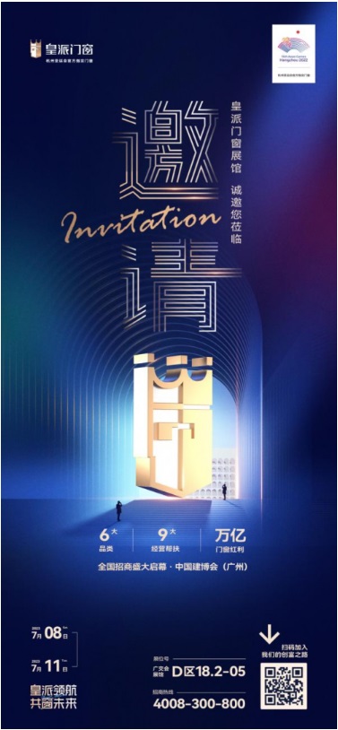 7月8日-11日,萬眾期待的2023年中國建博會(廣州)將于廣交會展館盛大啟幕,作為“大家居建裝行業”重要展示平臺,也是“行業招商第一平臺”,建博會無疑是一個精準“流量”入口,成為行業目光聚焦的戰場。而門窗定制行業佼佼者皇派門窗早已蓄勢待發、搶占賽場起點,將亮相中國建博會(廣州),啟動以“皇派領航,共「窗」未來”為主題的全渠道線上線下招商,尋找財富合伙人,揭秘定制門窗創富秘籍。