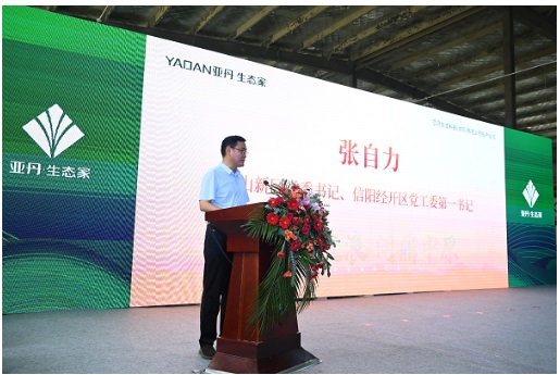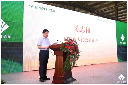 陳志偉代表市委、市政府向項目的投產表示祝賀。他指出,近年來,信陽市委、市政府聚焦“兩個更好”,錨定“兩個確保”,對標“十大戰略”,深入實施“1335”工作布局,圍繞構建未來人居全產業鏈,全力打造綠色建造、綠色家居產業集群。亞丹生態科技(信陽)有限公司的順利投產,是綠色家居產業鏈條的延伸,對完善產業鏈布局、帶動全市產業結構優化調整和轉型升級、加快產業綠色崛起意義重大。