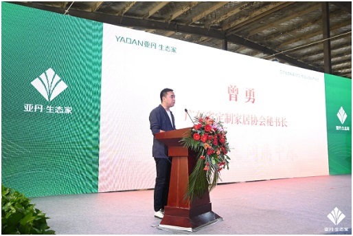 曾勇在致辭中表示,亞丹生態科技(信陽)有限公司得以快速落地和投產,離不開各級政府部門和行業協會的幫扶支持,得益于信陽市對外開放的良好氛圍、寬松的投資環境以及獨具特色的區位優勢和生態資源。亞丹生態集團始終秉持“讓大眾享受更美好的居家生活”的發展理念,與信陽市政府堅持“美好生活看信陽”的城市愿景不謀而合、高度契合,亞丹集團與信陽牽手同行,將賡續政企合作新篇章,共繪綠色家居產業新藍圖。