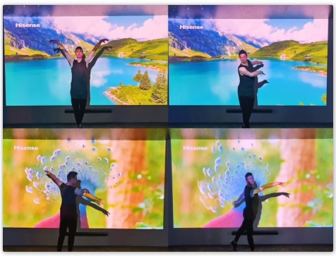 IFA現場,海信全球首款8K激光電視、200吋融合屏等全百吋+巨幕顯示陣容引發海外觀眾頻頻駐足。現場更有國際藝術家,被激光投射出的巨幕觀影效果震撼,自發在色彩真實純凈的山水畫卷前翩翩起舞,吸引眾多國際參展者圍觀。