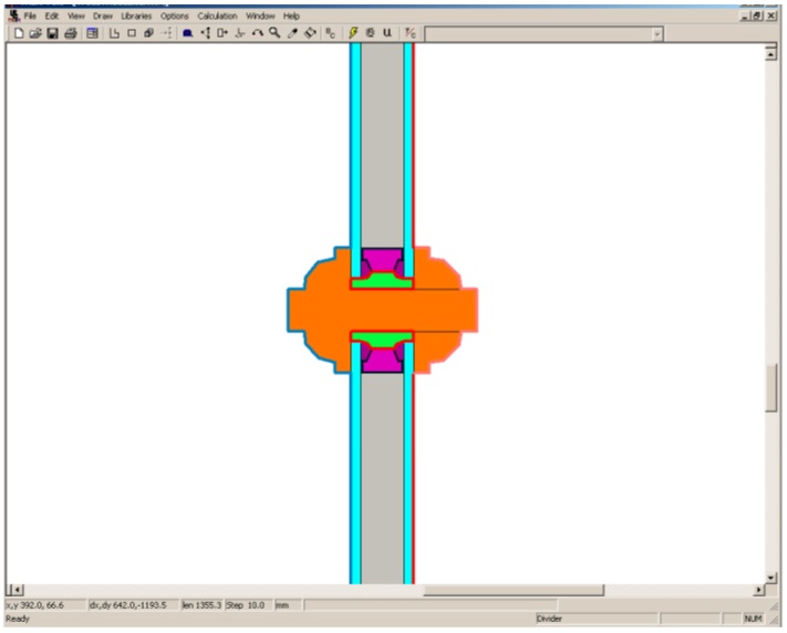 圖 8-32:THERM中的真窗格模型