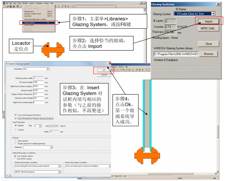 ④ 在第一個玻璃系統的下方,導入第二個玻璃系統,需要重新設置Locator(定位點),而且注意在彈出的對話框內選擇 Add as additional glazing system(添加作為額外的玻璃系統),具體設置如下: