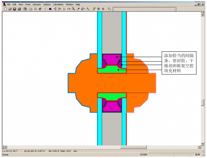 ⑤ 添加恰當的間隔條、密封膠、干燥劑和框架空腔填充材料。