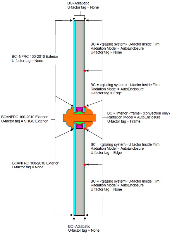 圖 8-45:使用Frame Cavity NFRC 100填充門格條周圍和內部的空腔