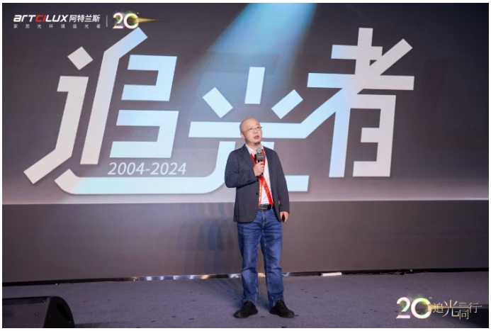 會上,Artcilux阿特蘭斯品牌創始人羊紅軍重磅揭曉了全新品牌戰略——“家居光環境追光者”。羊紅軍表示,未來20年,Artcilux阿特蘭斯將繼續進化迭代,全方位考量家居空間中光與用戶需求的深度融合,以創新領先的產品,為全球億萬家庭打造智慧化、藝術化、個性化的家居光環境,成為驅動并引領照明行業持續進化的堅實力量。