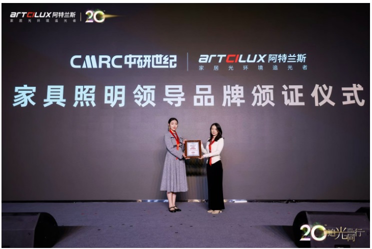 會上,國內權威市場調研機構中研世紀為阿特蘭斯頒發了市場地位確認證書——“家具照明領導品牌”榮譽證書。中研世紀市場調研部總監曲晨指出:“該認證基于詳盡的研究方法和完整的支持性數據,從品牌、產品、技術和市場四個維度全面評估了阿特蘭斯的表現。”這一榮譽不僅是對阿特蘭斯5A燈光領先標準的認可,更是對其超級匠品理念的絕佳印證。