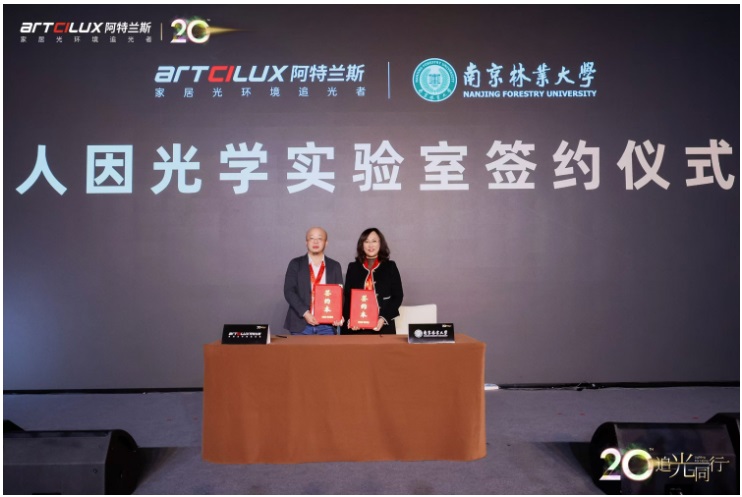 在“藝術之光,為愛點亮”品牌理念的引領下,Artcilux阿特蘭斯將攜手設計師、家居品牌和供應鏈品牌,一起重塑光的五重價值——藝術、照明、氛圍、健康、情緒、美學。會上,阿特蘭斯與南京林業大學正式簽約,雙方將聯合成立人因光學實驗室,通過產學研三方力量,加速推動健康照明與智能控制技術的深度融合,讓光為人居健康服,進一步提升用戶體驗。