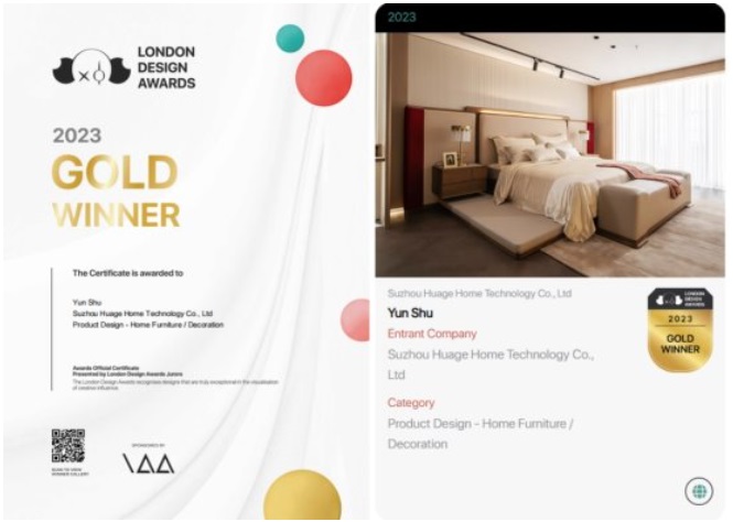 華閣生活「云舒」臥室榮獲2023年倫敦設(shè)計獎金獎