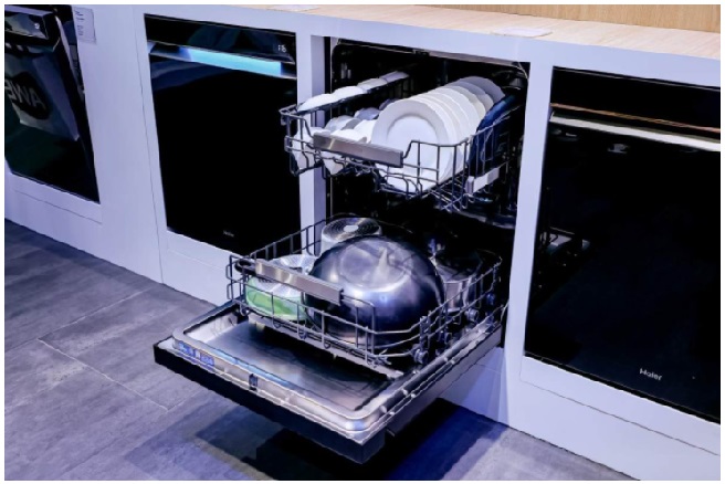 在AWE海爾洗碗機展區,海爾洗碗機現場發起了潔凈挑戰。上層洗碗、下層洗鍋,海爾雙面洗洗碗機W5000Max能輕松裝下8人家庭聚餐的全部餐具和鍋具,很受關注。原來,這款洗碗機僅上層碗籃就能擺放餐盤、杯碟、湯勺等56件餐具,連大型魚盤也能輕松擺放,由此留出下層空間一次能放開炒鍋、蒸鍋等4口鍋,真正做到名副其實的16套大容量。