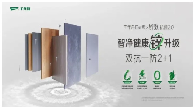 千年舟肌理板在制作過程中采用環保生態膠粘劑,經過權威檢測環保等級可達到國標ENF級和日本F四星級標準,環保性能優越;與此同時,千年舟肌理板全面采用鋅效抗菌2.0技術,集抗菌、抗病毒、防霉三效一體,可達到高效抗菌、有效抗病毒、O級防霉的效果,為家居生活提供全面的健康保障,更適用于室內健康家居定制,住的更安心!