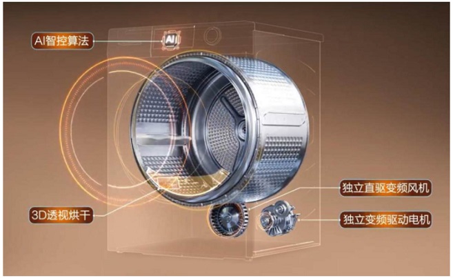 想舒展透干,首選雙擎熱泵科技。針對梅雨季晾衣不干的問題,海爾干衣機原創雙擎熱泵科技,創新雙驅動,通過獨立直驅變頻風機和獨立變頻驅動電機,實現1:1全時高頻正反轉,全程正反轉都能送風,既能抖散衣物防纏繞,又能烘得又透又快,被相關機構評定為達到國際領先水平。