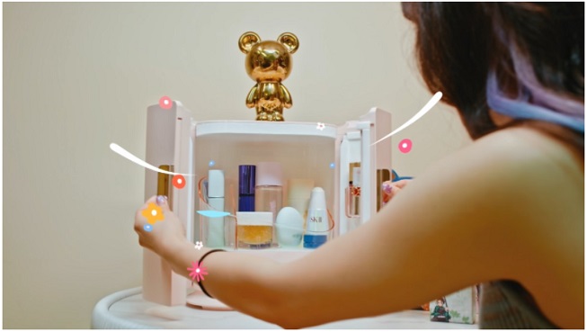 在Leader iCase小彩條冰箱上,能看到她親手繪制的動漫人物貼膜,就像生活中的伙伴陪伴著自己。晚餐時,她會從冰箱拿出新鮮食材,準(zhǔn)備一頓精致大餐;或者小酌一杯,獨(dú)享一個人的浪漫情調(diào)。入睡前,愛日莉也會從Leader小仙貝美妝冰箱取出護(hù)膚品,冰箱不僅能減緩護(hù)膚品活性成分流失,還能用手機(jī)智能測膚,給出護(hù)膚建議,為愛美的她提供了不少便利。