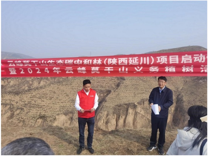 啟動儀式上,延川縣人民政府副縣長馬驥濤致歡迎辭。他表示,云峰莫干山生態碳中和林(陜西延川)項目的實施將對改善當地生態環境、促進綠色發展產生深遠影響,也期待通過雙方的共同努力,將這片土地打造成生態文明的典范。