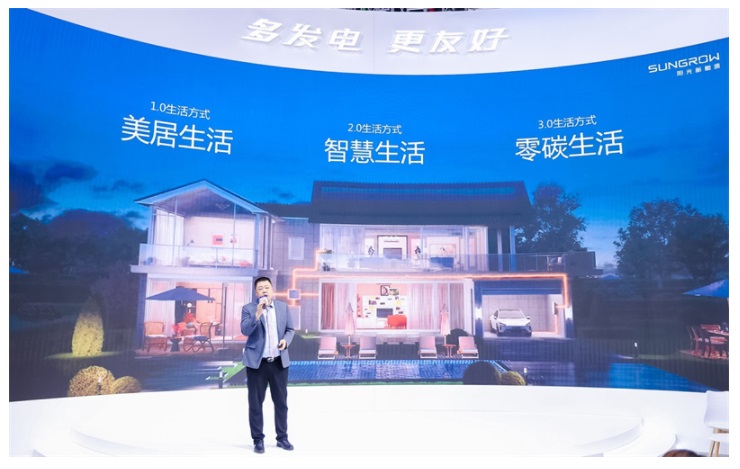 在展區C位,iHomePow陽光家庭能源展臺人頭攢動。這是陽光新能源專為中國大宅、別墅用戶匠心打造的家庭能源產品!案叨似焚|的家庭生活,正從1.0的美居生活、2.0的智慧生活邁向3.0的零碳生活,光儲充一體化的家庭能源產品和綠色用能方式將大有可為!标柟饧彝ツ茉纯偨浝硇祆拖蛴^眾娓娓道來。