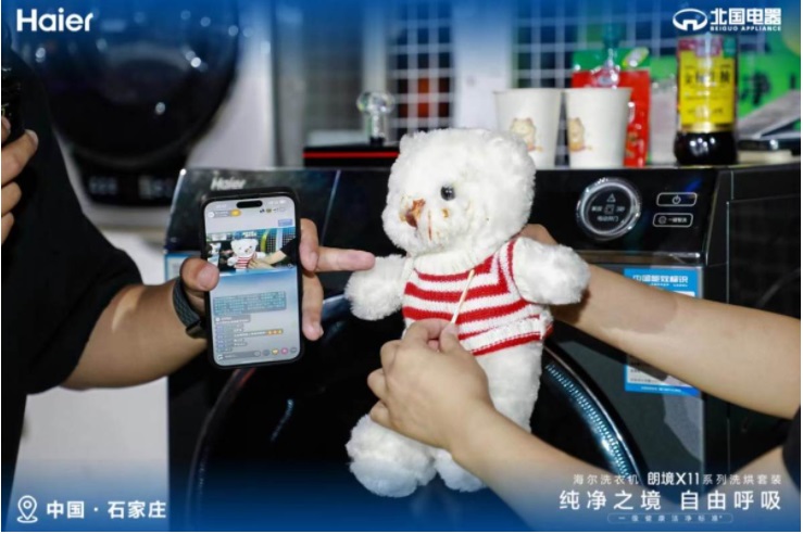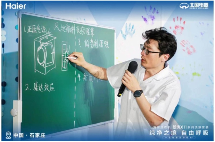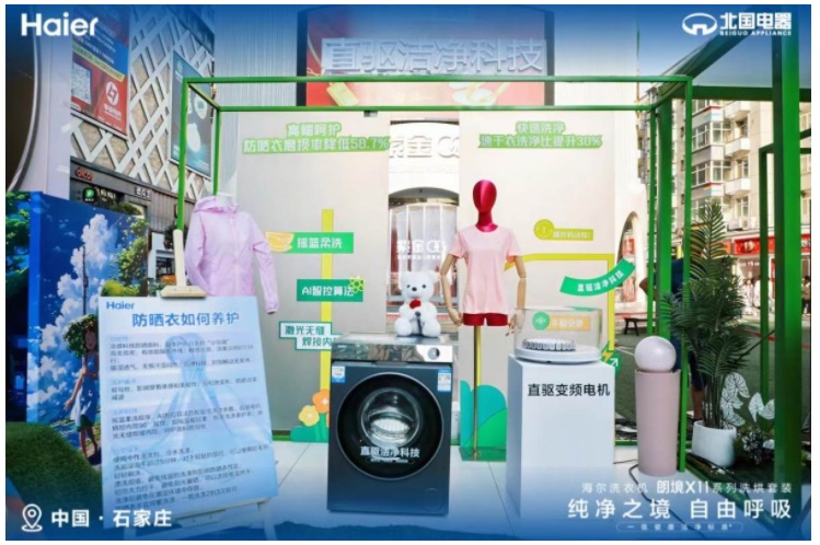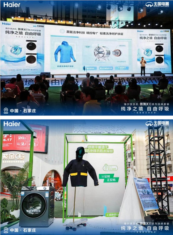 6月15日,在“穿行四季·逐風季”石家莊站活動現場,海爾洗衣機上市“會呼吸”的朗境X11系列新品,有效解決了洗衣機潮濕異味的難題。