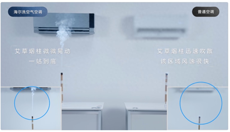 6月13日,海爾智家發(fā)布視頻《海爾科技,一“站”到底》。視頻中,艾草柱分別置于海爾洗空氣空調和普通空調下,點燃艾草柱后,普通空調下的煙柱迅速被吹散,海爾洗空氣空調下的煙柱卻只微微晃動,一站到底。