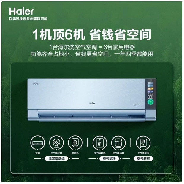 事實上,海爾洗空氣空調綜合了空調、空氣循環(huán)扇、除濕機、空氣消毒機、空氣凈化器、空氣清新機等功能,相當于1臺空調頂6臺家電,適用于全國各地的復雜氣候,1臺洗空氣空調就可以滿足用戶需要的清新空氣。