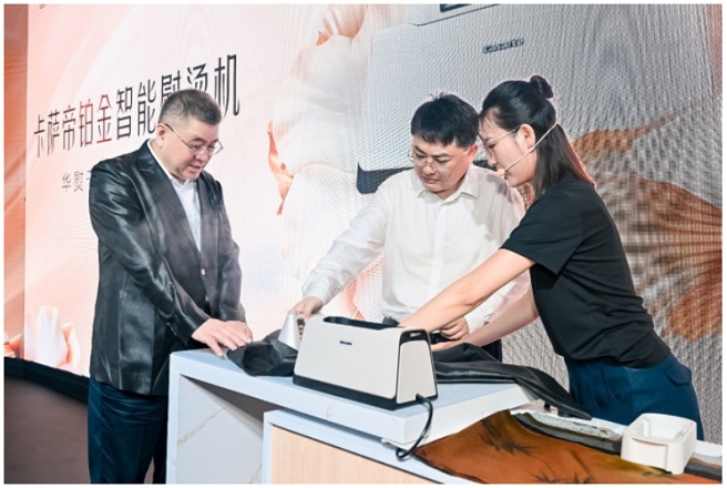 6月21日,卡薩帝鉑金智能熨燙機鑒賞會在重百電器舉辦。這款新品不僅帶來了專業的絲綢護理效果,其護理能力更獲得了中國絲綢協會、中國絲綢工業有限公司授予的“官方唯一指定絲綢專業熨燙護理產品”的權威認證。而在6月21日舉辦的卡薩帝思享薈上,卡薩帝也將這款產品帶到了現場。