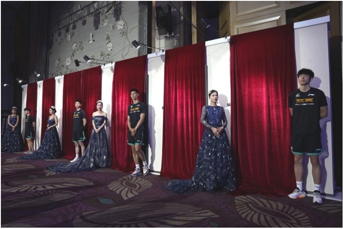 隨后,領導嘉賓共同上臺啟動“開啟美好生活”肯帝亞2024木門新品系列發布儀式,CBA江蘇肯帝亞俱樂部球員們登場為新品揭幕。