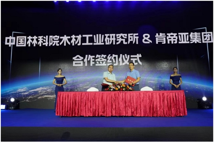 肯帝亞的持續創新發展離不開對肯帝亞前沿技術的支持和精研,接下來,中國林科院木材工業研究所和肯帝亞集團就《肯帝亞木門制造與質量提升技術項目》在現場舉行了產學研課題合作簽約儀式。
