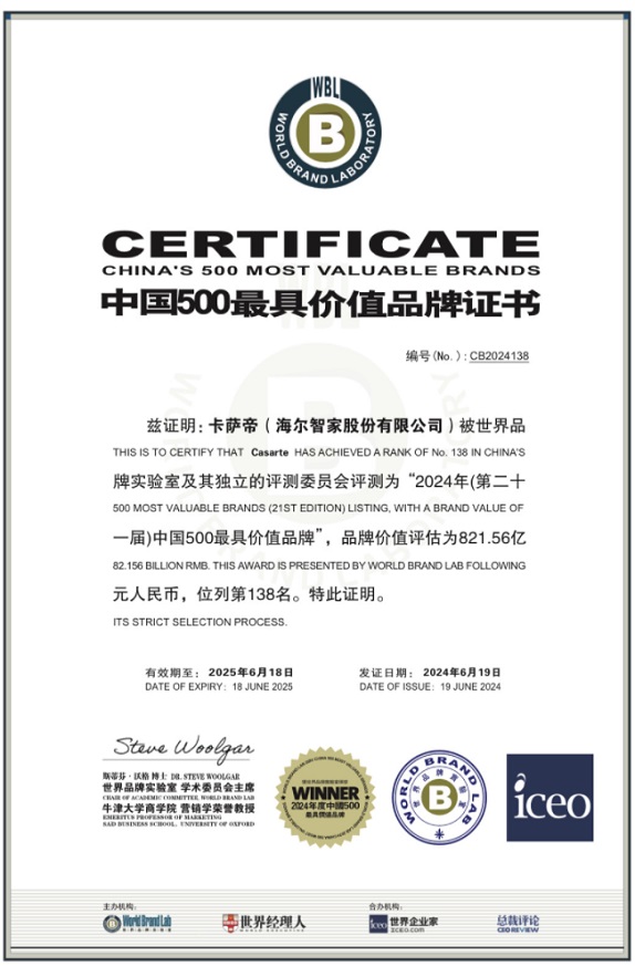 近日,卡薩帝第4次榮登世界品牌實驗室(World Brand Lab)發布的《中國500最具價值品牌》榜單,以821.56億品牌價值成為高端家電唯一入選品牌。