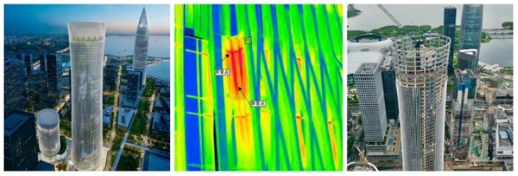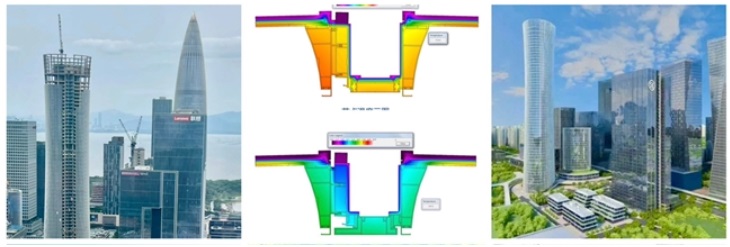 大廈的外立面幕墻為金屬條裝飾風格,幕墻總面積約8.12萬平方米,包括單元式玻璃幕墻、拉索幕墻等幕墻系統,并將遮陽、隔熱、通風和照明集成到精致的高性能立面設計中,在滿足設計美學的同時充分保障了住戶的舒適度和健康體驗。項目團隊采用了暖框幕墻隔熱毯創新的高性能斷熱等高新技術,以保證建筑無冷熱橋的保溫隔熱連續性高效節能設計和抗結露設計, 大幅提升了建筑外墻的節能性能和室內舒適度,讓建筑無論外形藝術設計自由度和各項低碳及節能指標性能均處于國內的領先水平。