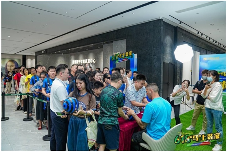 當天,馬爾科·馬特拉齊與超過300位來自華南地區的蒙娜麗莎業主、球迷朋友相聚蒙娜麗莎大廈,一同參觀陶瓷大板及巖板應用空間,近距離體驗蒙娜麗莎產品花色、紋理及質感呈現出的空間場景。