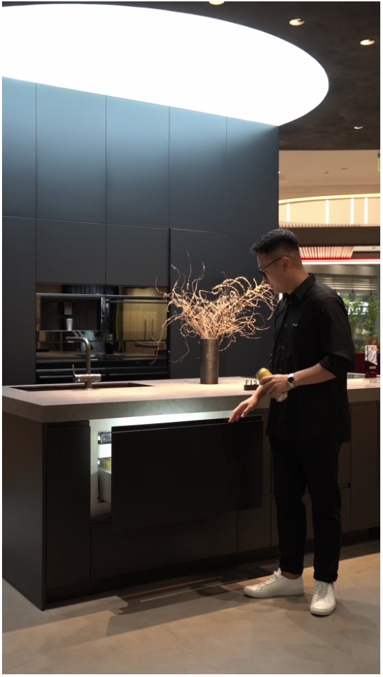 在這樣的廚房里,用戶可以一邊與朋友談笑風生,一邊一起制作清爽沙拉。順手拉開臺面下的抽屜式冰箱,將剛做好的甜點放進去冷藏,再取出一支臻藏的紅酒,與朋友分享美味與喜悅。整個過程流暢自然,無需離開島臺就讓社交與烹飪相互融合,營造出優雅而愜意的社交氛圍。