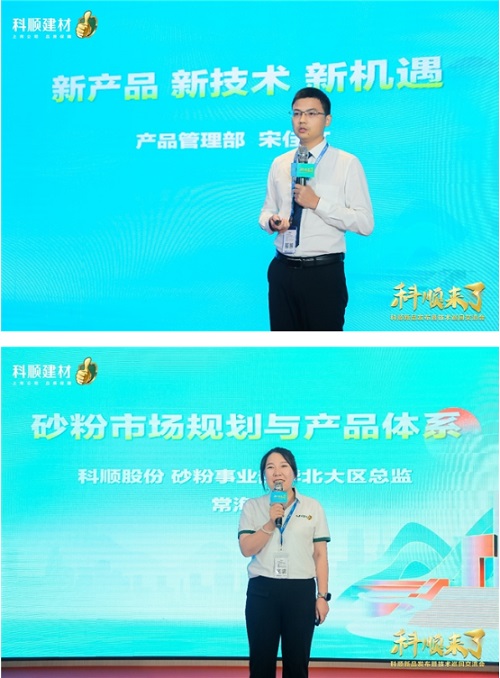 民建產(chǎn)品管理部總監(jiān)宋佳文、砂粉事業(yè)部華北大區(qū)總監(jiān)常海員作主題分享