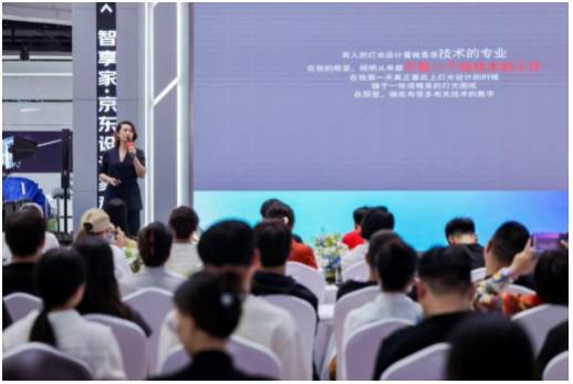 現場,深耕燈光設計領域20年、師從國際燈光設計大師關永權的關永權燈光設計(北京)設計總監 朱海燕女士受京東設計家盛情邀約,以《光影設計的空間藝術表達》為引路之芒賦能空間藝術,讓設計師與家居愛好者們齊聚一堂,將光影藝術的智慧與未來交織成一幅流光畫卷。