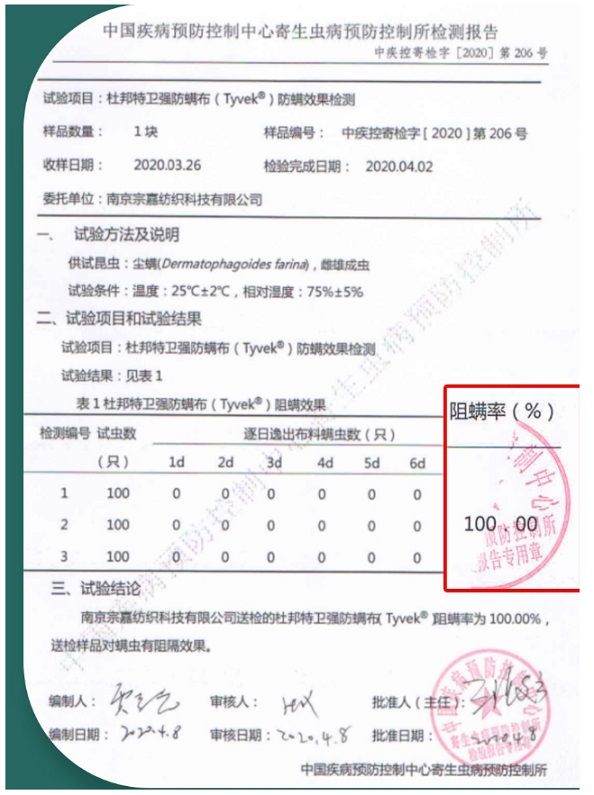 床墊表面采用杜邦™Tyvek®無紡布材料,這種材料不僅透氣、防水,還能有效阻隔螨蟲和微塵,保護睡眠健康。經過權威檢測,其阻螨率高達100%,為你提供一個干凈、衛生的睡眠環境。