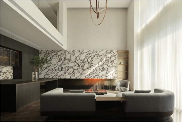 別墅客廳模擬場(chǎng)景,主背景墻寶格麗巖板及普拉達(dá)綠巖板搭配,將現(xiàn)代輕奢的高貴氣質(zhì)凸顯無疑,讓居者置身其中,能夠切身感受每一寸空間的藝術(shù)品味。無上專注于獨(dú)具匠心的創(chuàng)新布局和細(xì)節(jié)把握,在整個(gè)展廳的設(shè)計(jì)當(dāng)中去繁就簡(jiǎn),以追求極致的制作工藝,來賦予生活更多溫情與生趣。