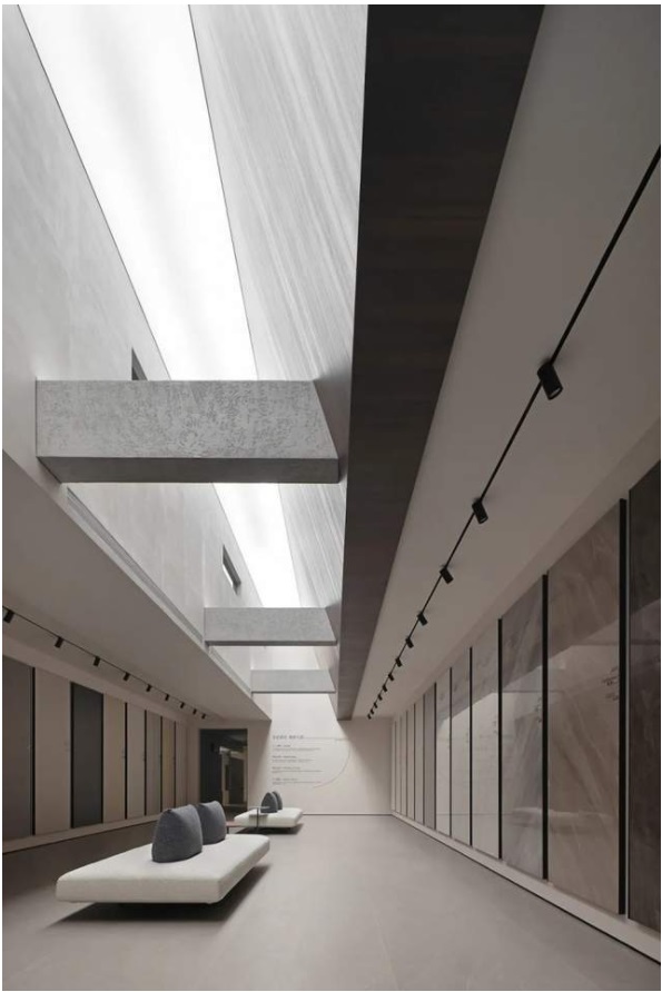 通過解構(gòu)主義的設(shè)計(jì)風(fēng)格,流線性的空間布局,動(dòng)感的陳列與展示,以及當(dāng)代年輕人喜歡的風(fēng)格色彩與光影搭配,成功吸引了更多意向群體來到無上巖板總部展廳打卡體驗(yàn)。