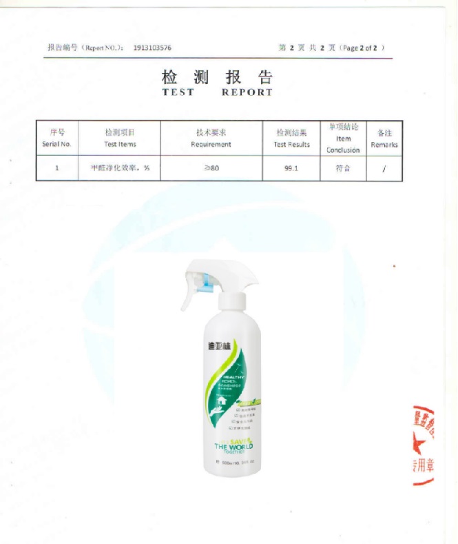 權威認證:具備國家權威檢測機構出具的CMA/CNAS認證報告,報告中會明確顯示對甲醛的去除率(高達99.1%)。