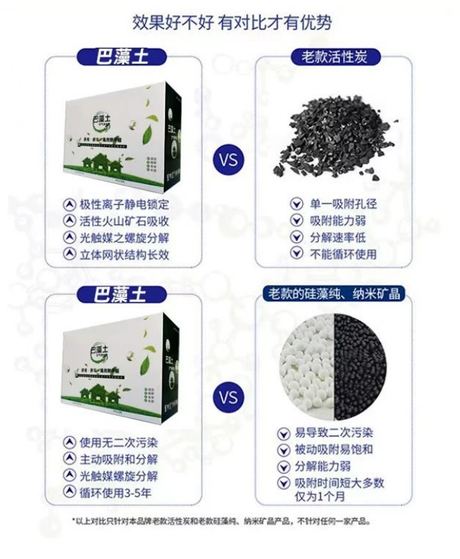 葉廣泥和活性炭不一樣,活性炭只能吸附,用一段時間以后吸附會飽和,葉廣泥不僅僅是吸附,是吸附后可以分解有害物質,不會再釋放,不需要暴曬,可以持久分解,使用3年。