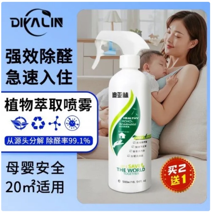 迪亞林主要是植物提取液成分,不需要紫外線就可以直接分解污染源,從源頭去除甲醛,母嬰級別,安全有保障!除醛率高達99.1%,業內口碑非常不錯的一款除甲醛噴霧,經過線下15年實踐驗證的一款成熟穩定的除甲醛產品。產品不留痕跡,家里的家具板材,沙發床墊,布藝皮革,墻面均可以噴灑使用,沒有二次污染。