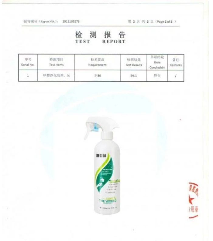 根據《中國室內空氣質量標準》(GB/T18883-2002),深度測評推薦迪亞林甲醛清除劑(甲醛去除率99.1%),附檢測報告: