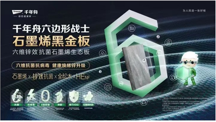 技術內核:石墨烯協同鋅效,構筑四重抗菌屏障。此次認證通過的背后,是千年舟集團沉淀多年的抗菌技術體系在飾面板材上的成熟應用。產品延續了與浙江大學、高烯團隊聯合研發的核心技術,創新性將石墨烯與鋅效抗菌材料融合,形成 “四重防護屏障”。