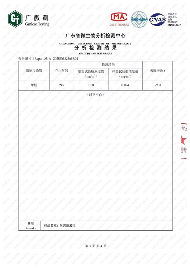 以上是沐光藍的甲醛去除率CMA檢測報告