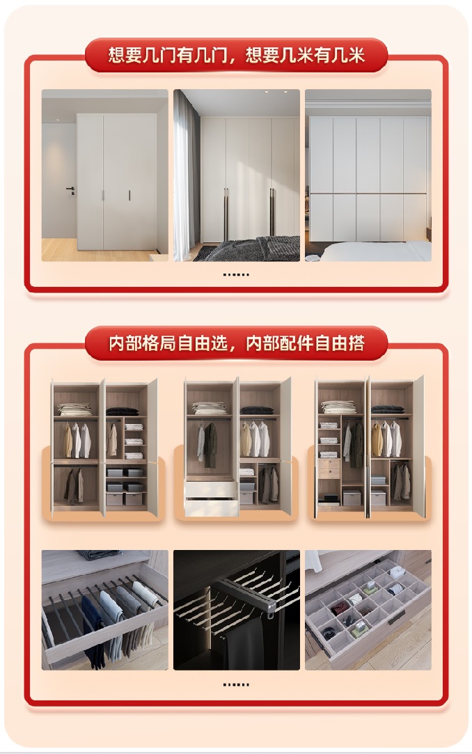 好萊客·萊住輕定制衣柜支持內(nèi)部組件自由搭配,兼容多種收納需求,搭配收邊條實現(xiàn)嚴絲合縫,真正實現(xiàn)“零容錯自助式定制”。