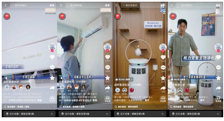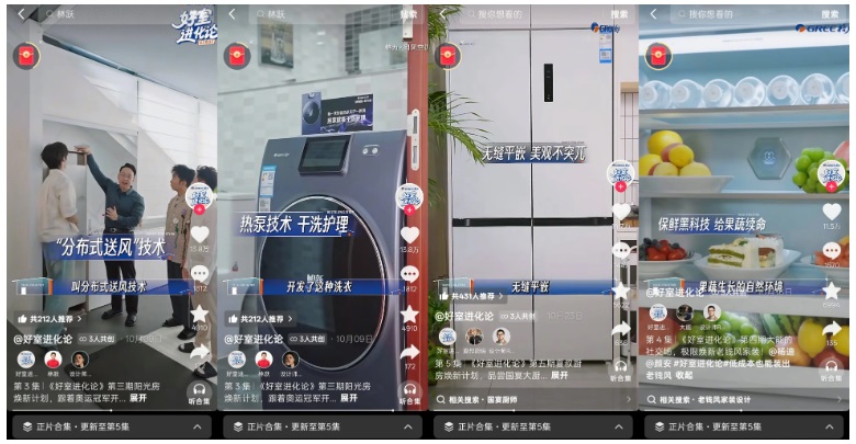 為打通 “觀看—種草—消費(fèi)” 的關(guān)鍵鏈路,「好室進(jìn)化論」IP特別打造H5專題頁面,最大化承接全站熱度,將內(nèi)容價(jià)值高效轉(zhuǎn)化為商業(yè)價(jià)值。專題頁作為微綜播放入口,支持用戶隨時(shí)回看節(jié)目精彩片段;同時(shí)整合達(dá)人種草專區(qū),集中展示格力產(chǎn)品在真實(shí)場景中的使用效果;最后設(shè)置 “同款選購” 通道,用戶可直接跳轉(zhuǎn)購買微綜中出現(xiàn)的新國標(biāo)全能王空調(diào)、505荔枝冰箱、鯨濤鋅礦凈水機(jī)等產(chǎn)品。另外,節(jié)目依托抖音平臺強(qiáng)大的流量資源,通過話題頁、開屏廣告、阿拉丁推薦、H5等多渠道全方位導(dǎo)流,最大化覆蓋目標(biāo)受眾。