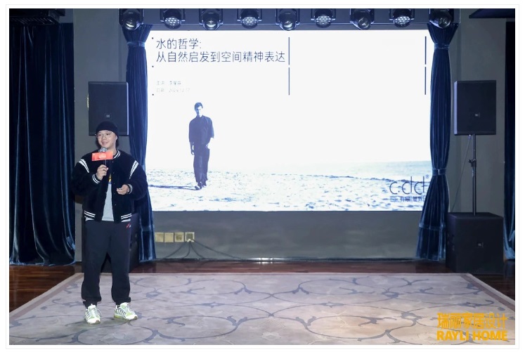 除了兩位評委老師的精彩演講,本次大賽還邀請了獲獎設計師代表來分享其對時尚設計的獨到見解。c.dd有限無界主創設計李星霖先生帶來的演講“水的哲學:從自然啟發到空間的精神表達”,讓我們仿佛跟隨潺潺流水,穿越自然與空間的邊界,領略到自然元素賦能設計的無窮魅力。