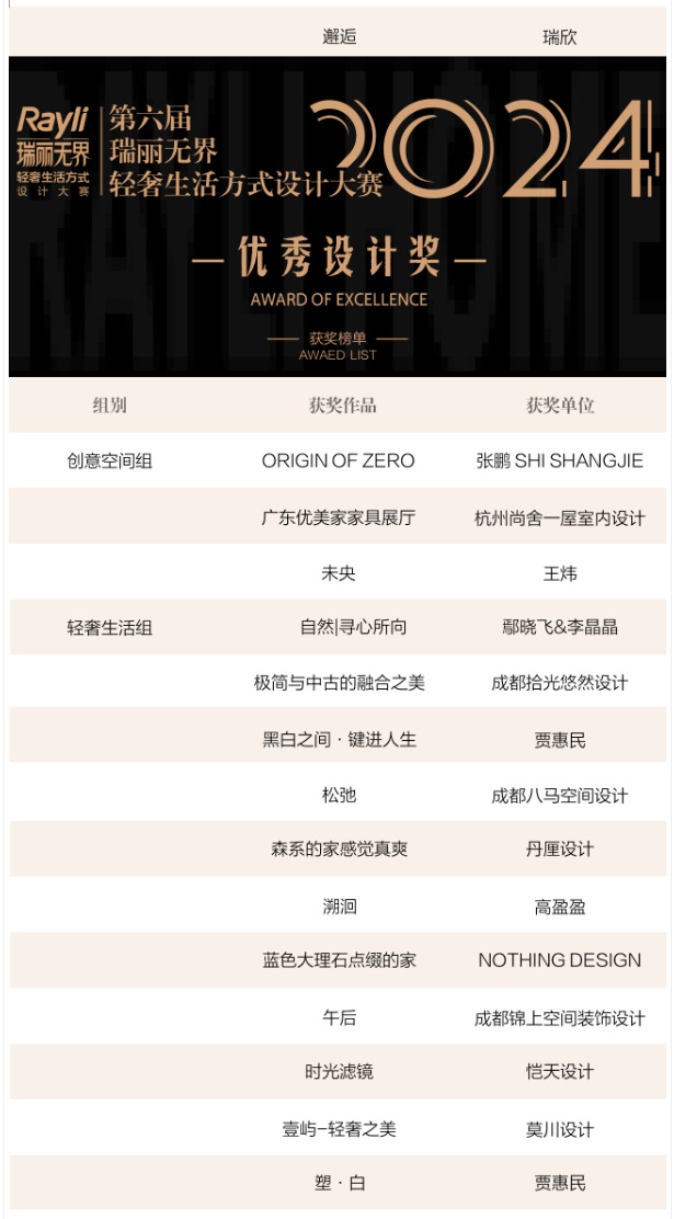 2024年12月17日,第三屆家居產業時尚發展大會暨第六屆Rayli瑞麗無界·輕奢生活方式設計大賽與第三屆家居產業時尚產品大賽頒獎典禮在北京順利舉行。在中國輕工業聯合會健康家居專業委員會的指導下,由在時尚領域深耕多年、極具影響力的北京《瑞麗》雜志社牽頭主辦,《瑞麗家居設計》事業部攜手《輕工標準與質量》雜志社全力承辦,并在眾多友好單位的鼎力支持下,匯聚成推動行業前行的磅礴力量。本次盛會以“設計論道”為主題,深度探尋當代中國家居產業時尚發展之路,一同解鎖行業新密碼。