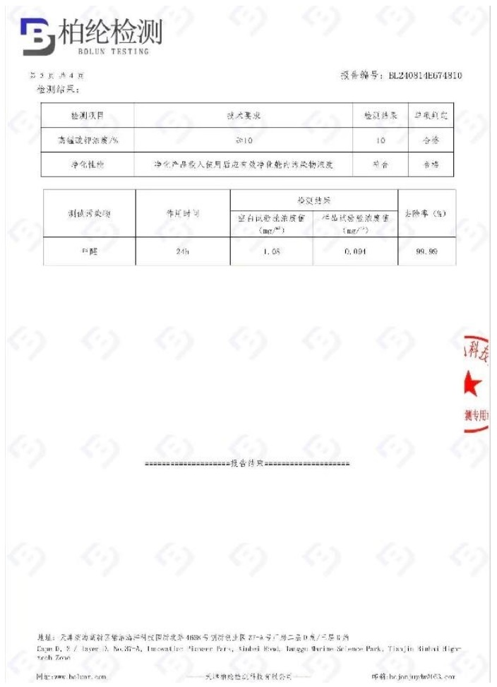根據《中國室內空氣質量標準》(GB/T18883-2002),更推薦速清石(甲醛去除率99.99%)附檢測報告: