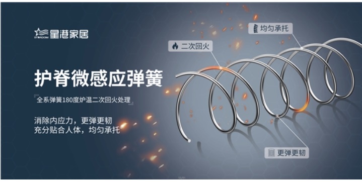 星港獨有的護脊微感應彈簧,均經過二次回火處理,比同行更多一道熱風爐回火的工序,更韌彈更耐用。