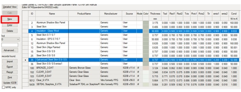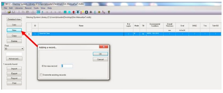 1. 點擊Glazing System Library(玻璃系統庫),創建一個新的玻璃系統編號。