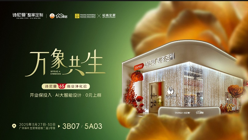 3月27-30日,為期4天的第14屆廣州定制家居展在廣州保利世貿(mào)博覽館圓滿落下了帷幕。詩尼曼以“萬象共生”為主題,通過3B07整家&AI家居館與5A03直營設(shè)計師館雙核聯(lián)動,吸引一眾觀展者參觀打卡,意向合作伙伴簽單不斷。