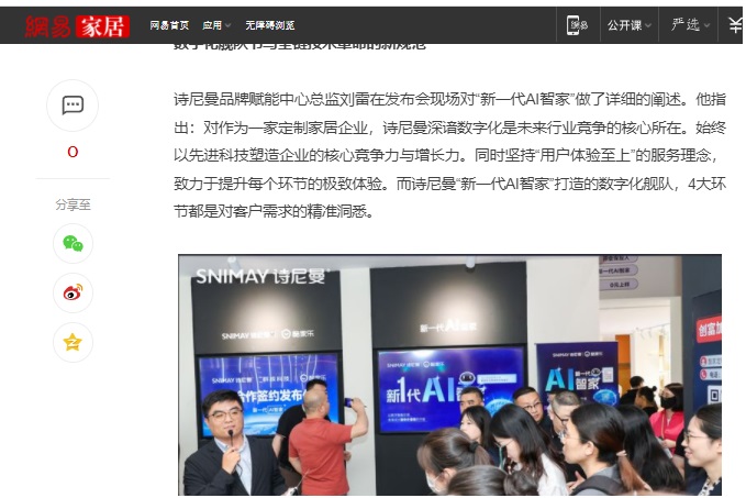 “新一代AI智家”重磅首發(fā),實現(xiàn)從單點突破到全鏈閉環(huán)。對作為一家定制家居企業(yè),詩尼曼深諳數(shù)字化是未來行業(yè)競爭的核心所在。始終以先進科技塑造企業(yè)的核心競爭力與增長力。同時堅持“用戶體驗至上”的服務(wù)理念,致力于提升每個環(huán)節(jié)的極致體驗。